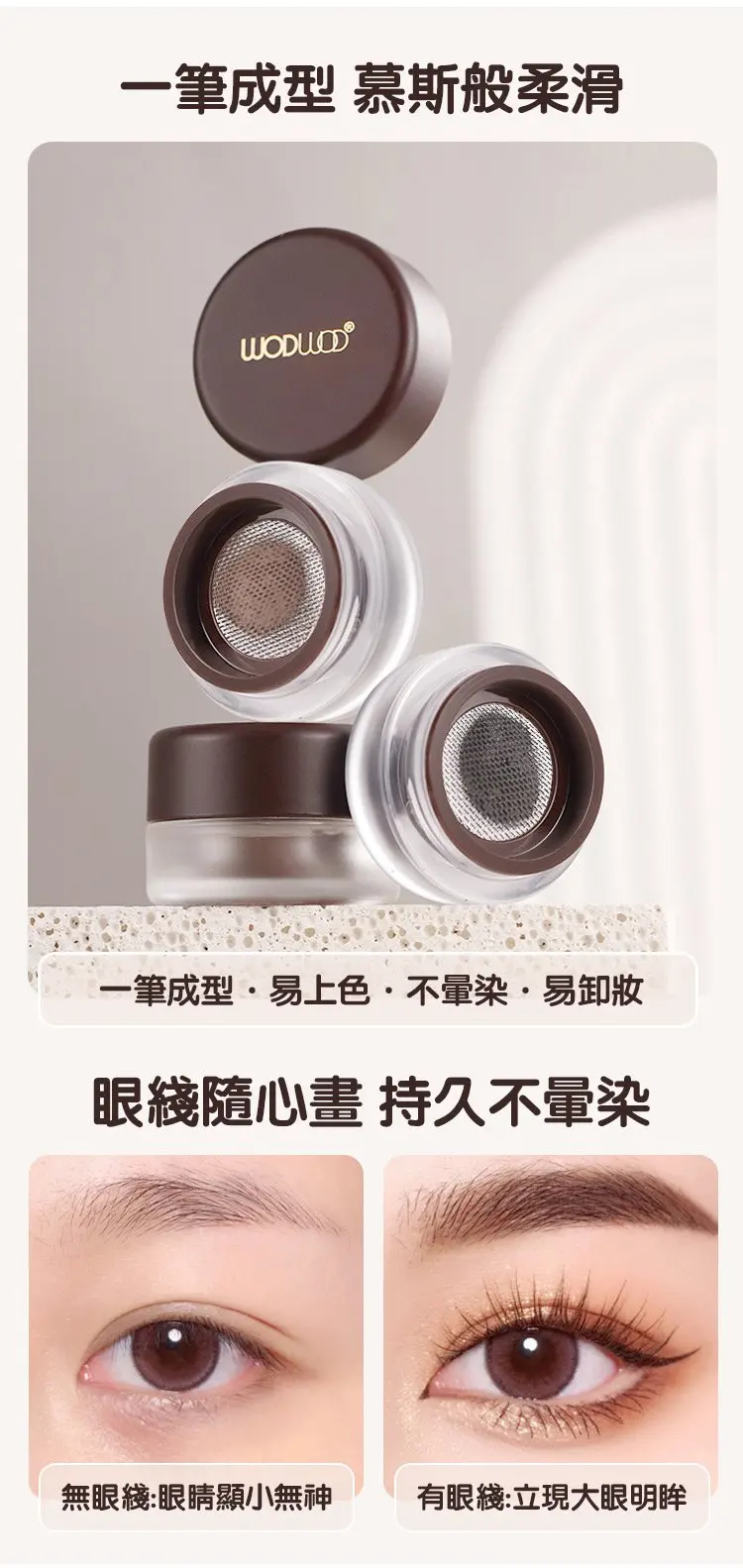 眼線+下至+臥蠶+眉毛一罐搞定!質地絲滑軟糯不結塊易上色。防水防汗不暈妝不脫妝速幹成膜
