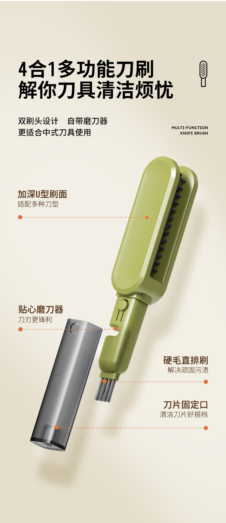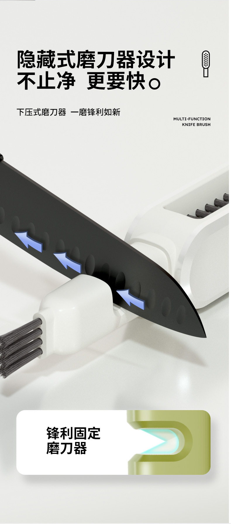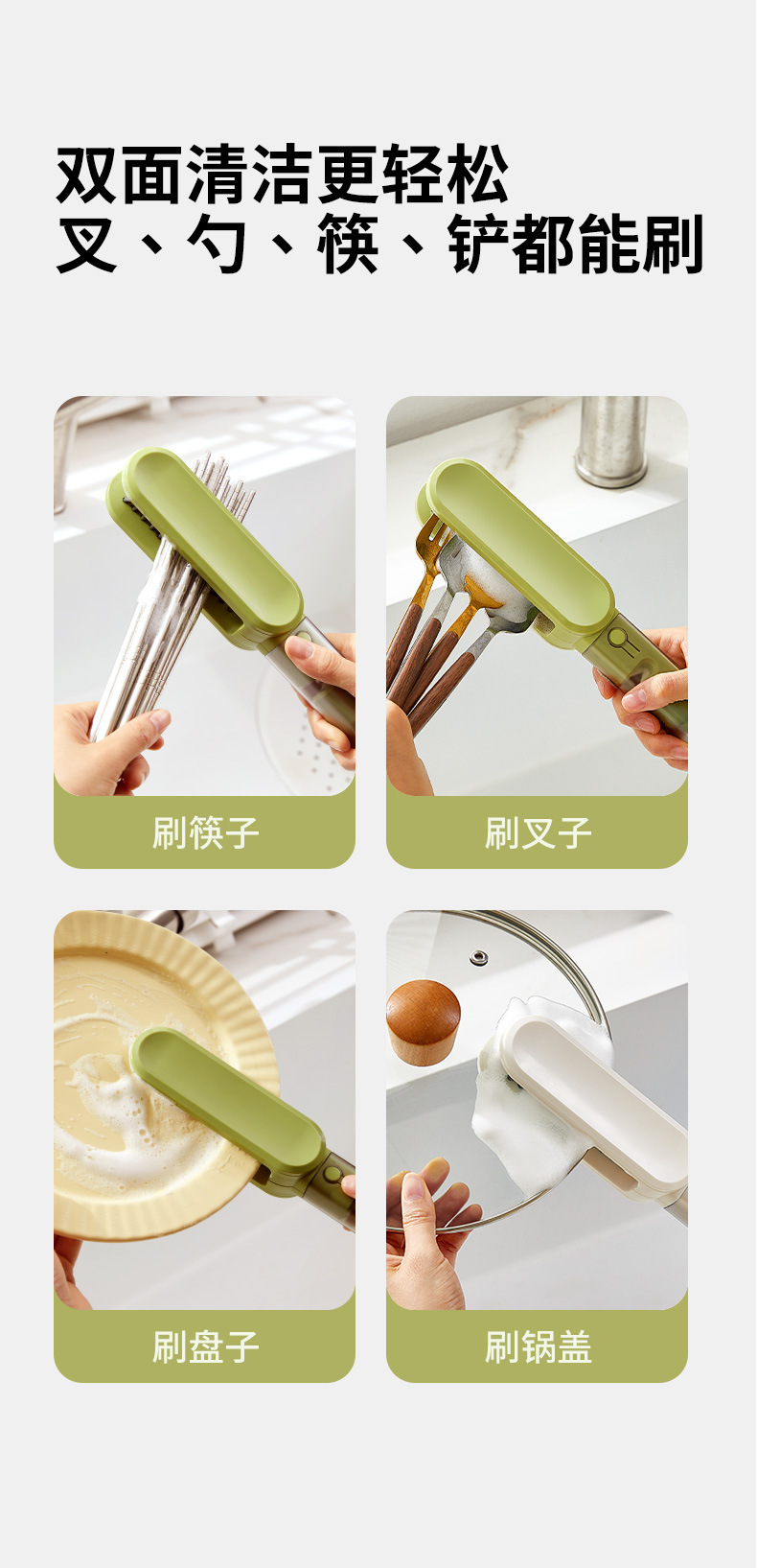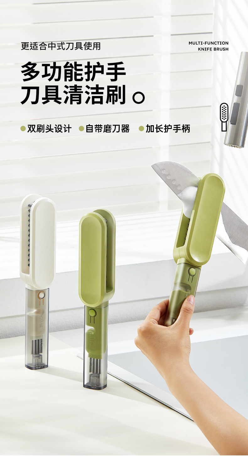 多功能刀具清潔刷,四合一刷頭設計,安全防護不傷手,輕鬆深入清潔各種刀叉縫隙,廚房必備神器!