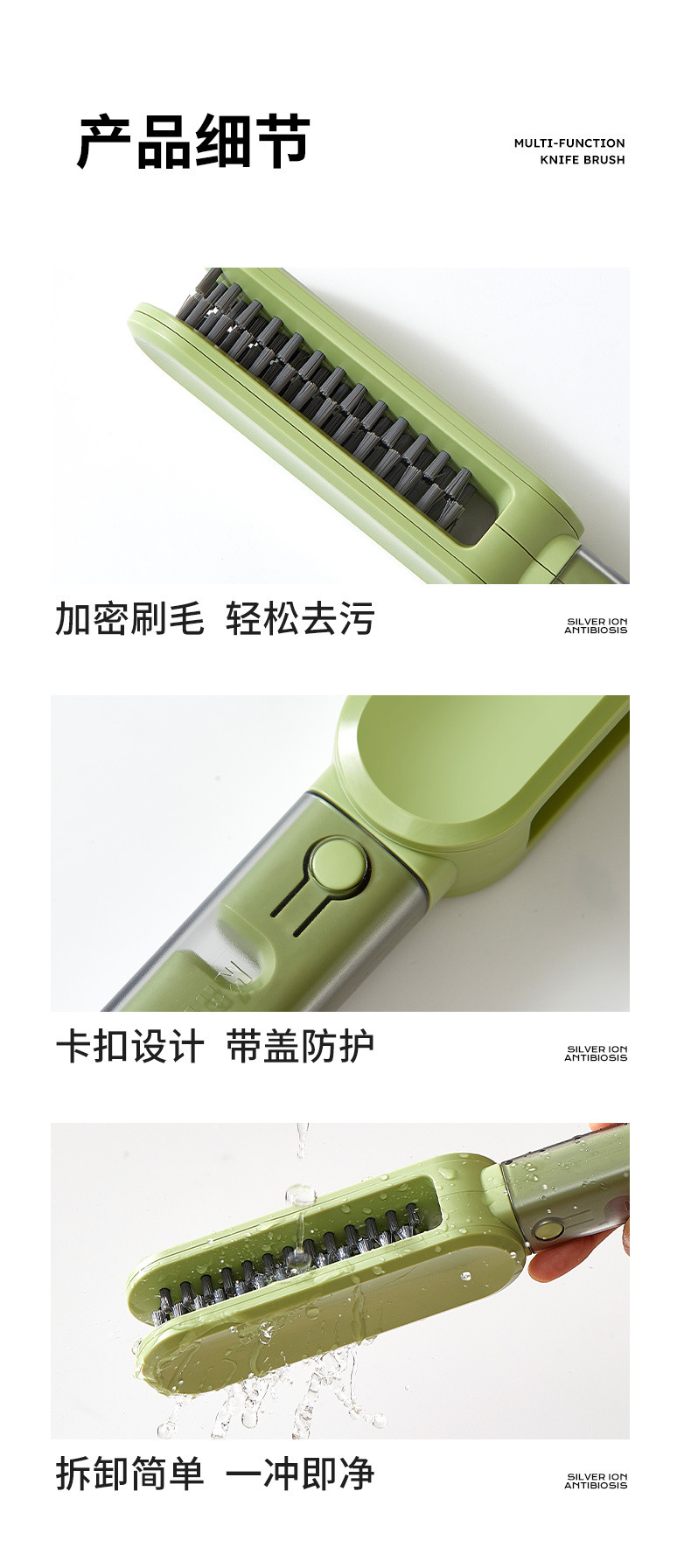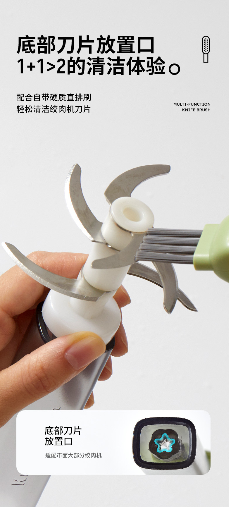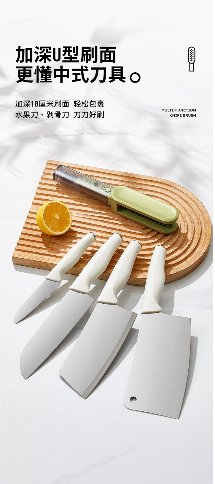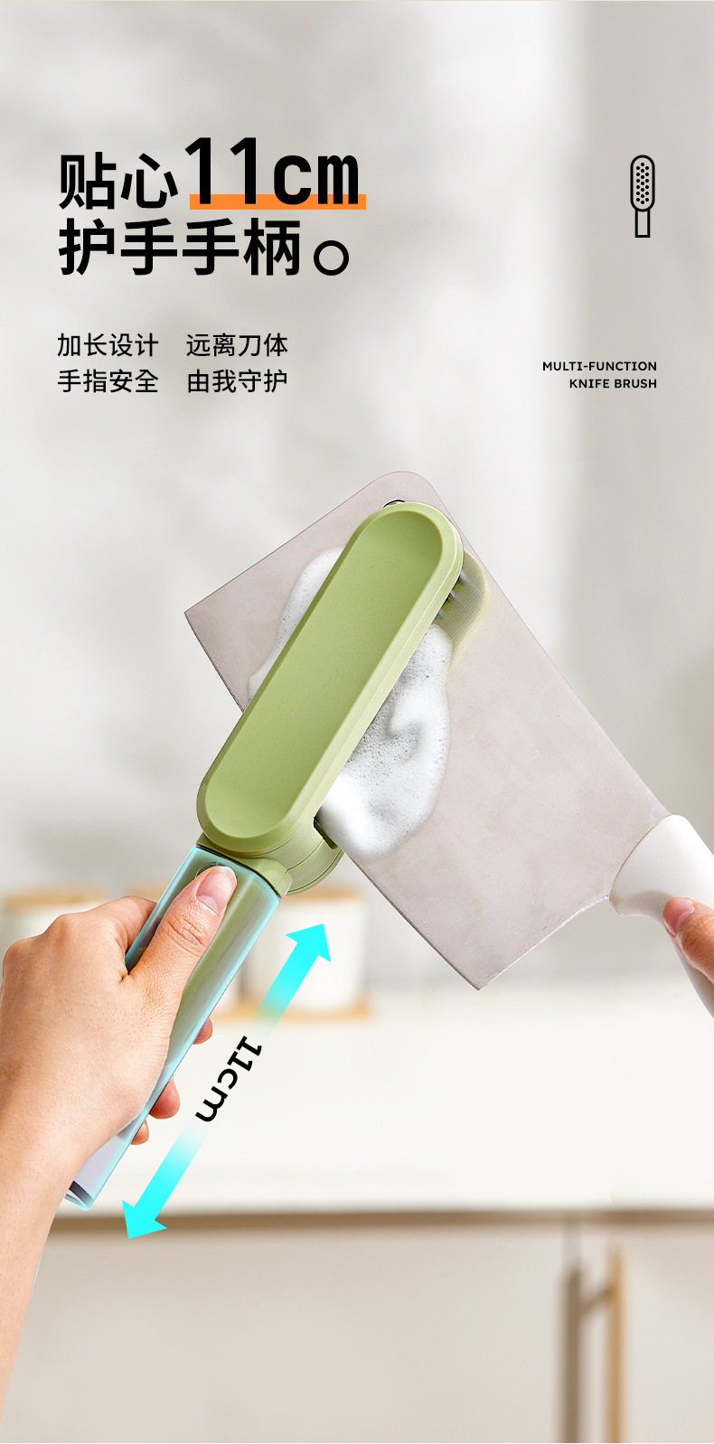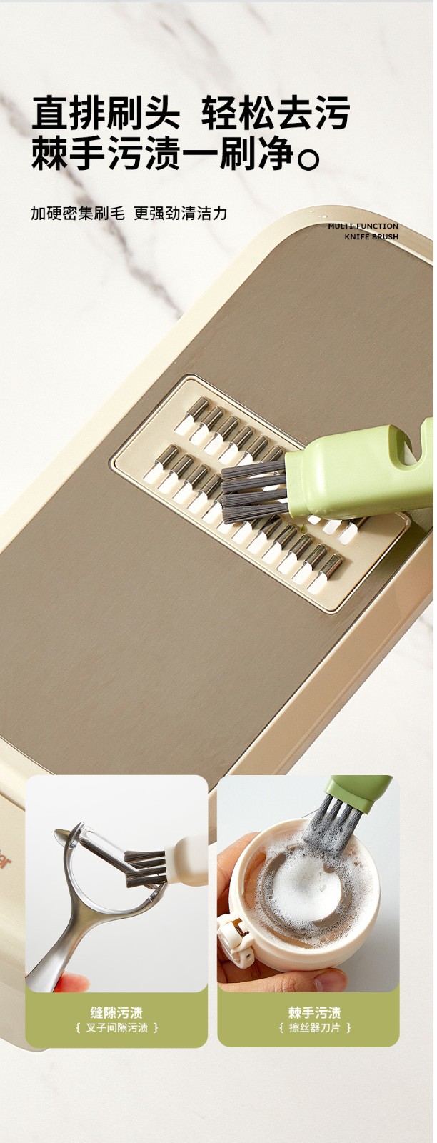 多功能刀具清潔刷,四合一刷頭設計,安全防護不傷手,輕鬆深入清潔各種刀叉縫隙,廚房必備神器!